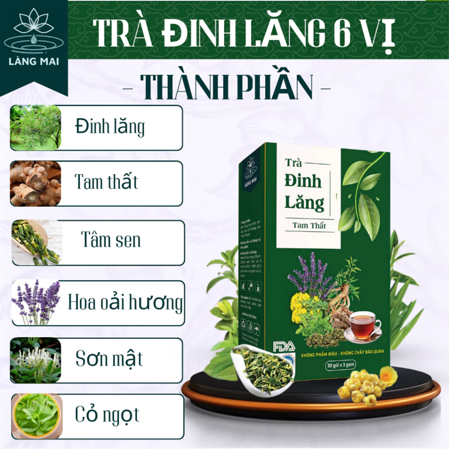 Đinh lăng: Được ví như “nhân sâm của người Việt”, đinh lăng chứa nhiều saponin và các axit amin thiết yếu giúp tăng cường trí nhớ, giảm căng thẳng, hỗ trợ lưu thông máu và cải thiện sức khỏe tổng thể.