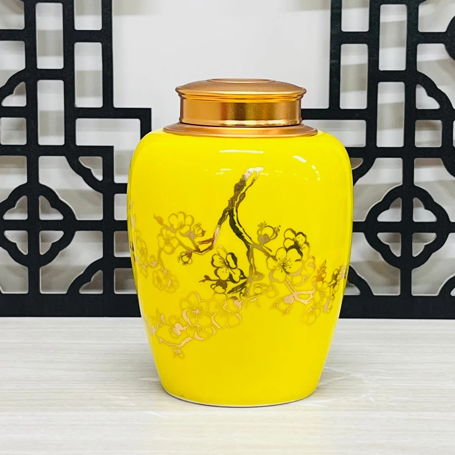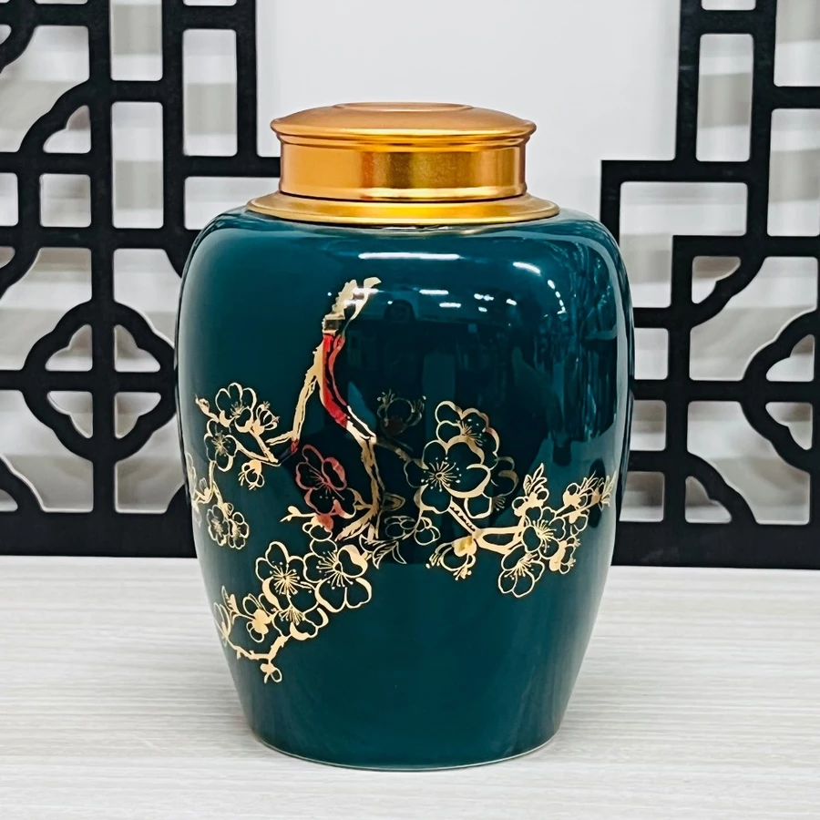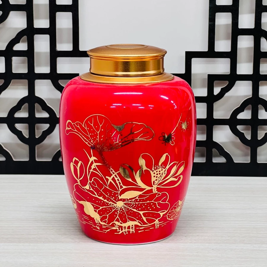 Lọ đựng trà bát tràng cao cấp họa tiết vàng kim, hũ đựng trà bằng sứ, bình đựng tra bát tràng