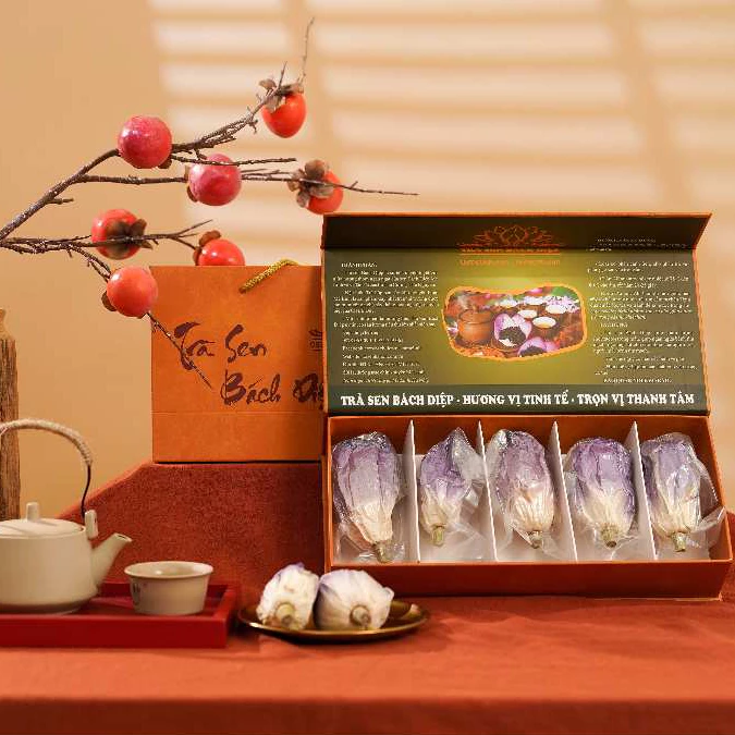 100% Trà Sen Bách Diệp Tây Hồ Hà Nội được thu hái thủ công, tuyển chọn những búp chè tươi ngon. Trà được gói trọn trong bông Sen giúp cho lá trà thẩm thấu toàn bộ hương sen, sau đó được sấy thăng hoa theo công nghệ hiện đại của Đức để giữ được trong hương vị và bảo quản được lâu, khi pha tạo nên cảm giác khoan khoái và thư giãn.